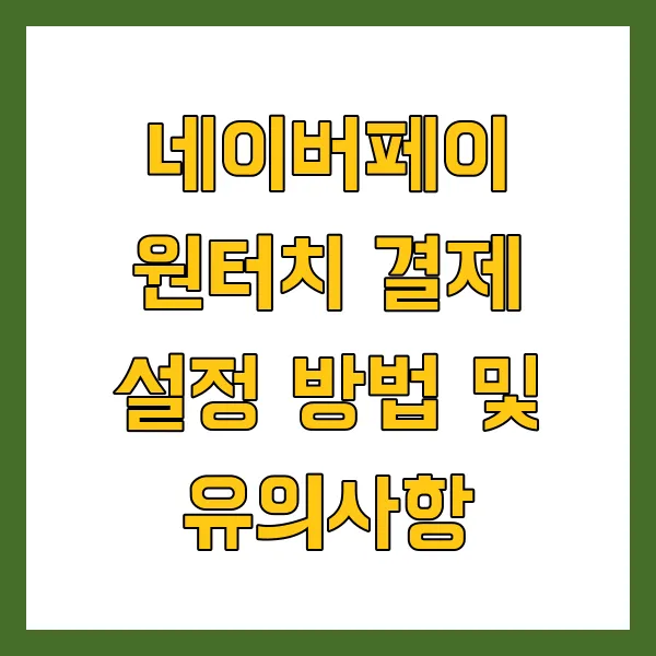네이버페이 원터치 결제 는 간편함과 빠른 속도 를 자랑하지만, 편리한 만큼 사용 시 몇 가지 유의사항을 숙지 하는 것이 중요합니다. 안전하고 효율적인 결제 경험을 위해 다음 사항들을 꼼꼼히 확인해 주시기 바랍니다.
