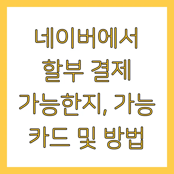 온라인 쇼핑을 즐기는 당신, 네이버페이 로 결제할 때 할부 기능이 없어 불편했던 적 있으신가요? 혹시 네이버에서 할부 결제가 가능한지, 된다면 어떤 카드들을 이용할 수 있는지 궁금 하셨을 겁니다.