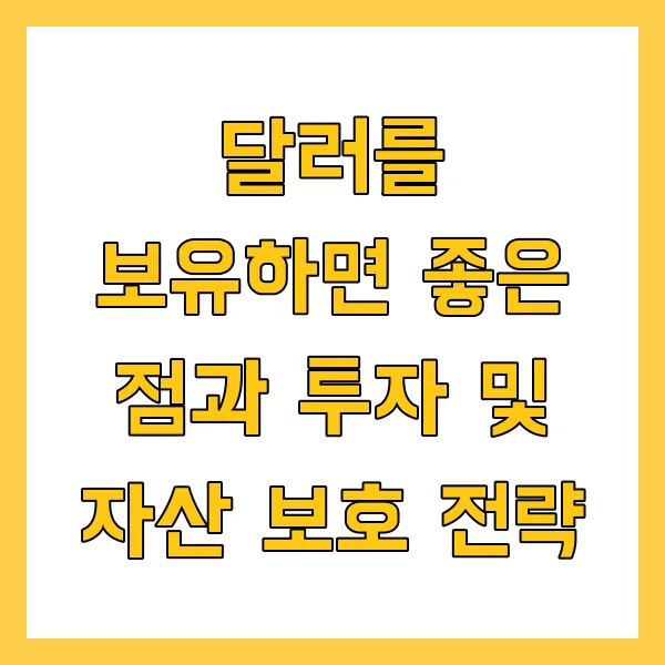 이처럼 다양한 자산 보호 방법을 활용하여 소중한 달러 자산을 안전하게 지키고, 성공적인 재테크를 이루시길 바랍니다.