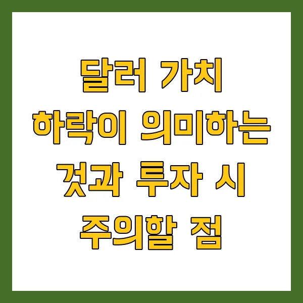 이번 블로그에서는 달러 가치 하락 의 근본적인 원인을 분석 하고, 이에 따른 투자 전략을 심층적으로 점검 해보고자 합니다. 변동성이 커진 시장에서 투자자들이 어떻게 현명하게 대처해야 할지, 구체적인 위험 관리 방법과 장기적인 투자 관점을 제시할 예정입니다.